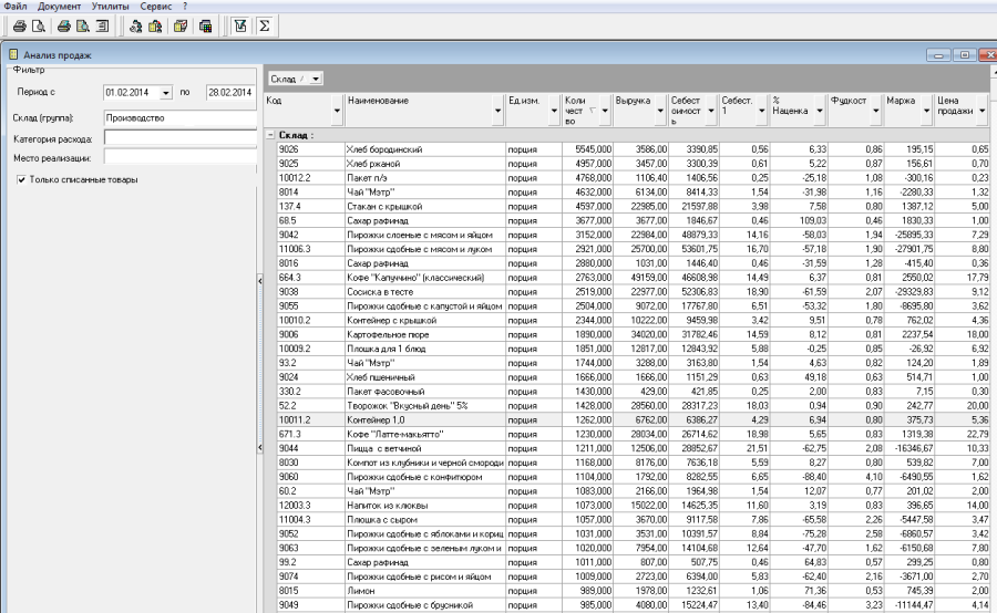Отчет «Анализ продаж» – это финансово операционный отчет. Необходим для анализа спроса и, как следствие, самого меню ресторана.