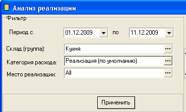 После запуска команды Анализ реализации на экране появляется окно фильтра.