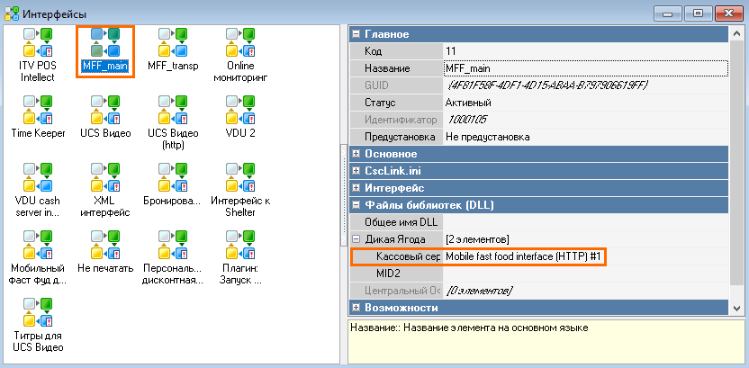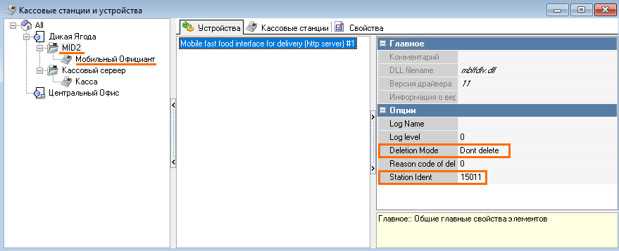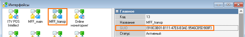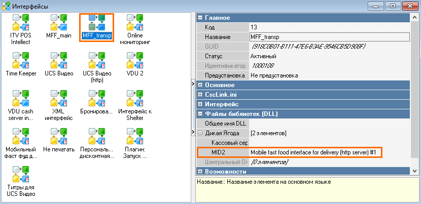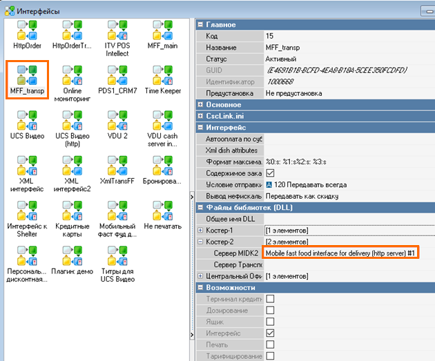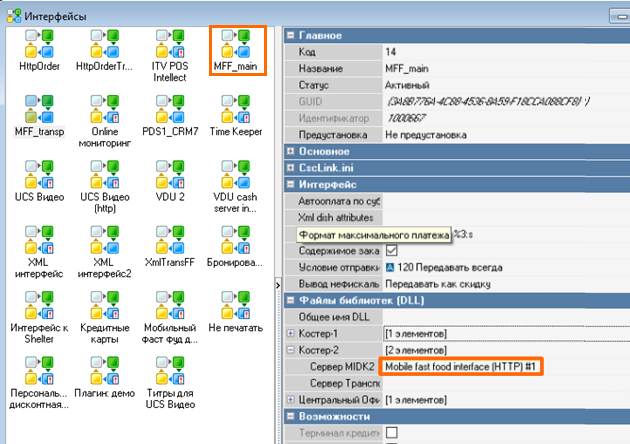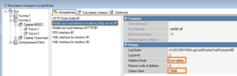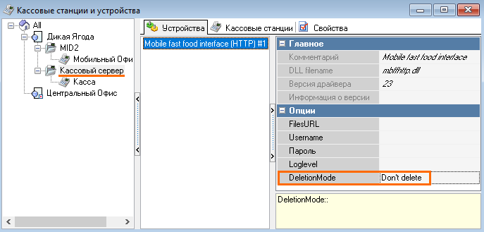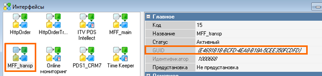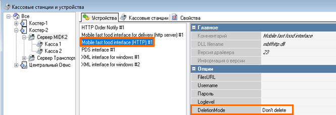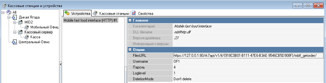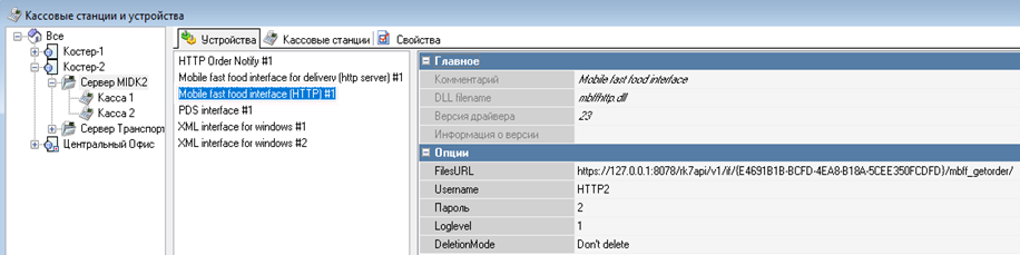 - GUID — GUID логического интерфейса кассового сервера, на котором установлен драйвер Mobile fast food interface for delivery (http server)