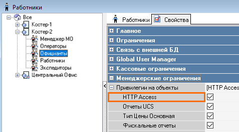 В разделе Менеджерские ограничения найдите поле HTTP Access и поставьте галочку