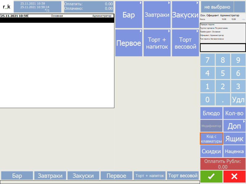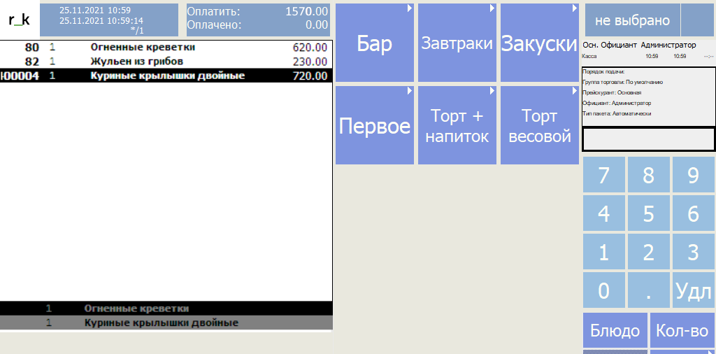 Когда официант начнет сохранят заказ, приложение потребует ввести четырехзначный номер. По этому номеру заказ будет искать кассир на кассе.