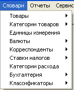 - Классификаторы – в этом пункте меню заводятся значения классификаторов товаров и корреспондентов.