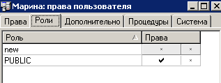 Любому пользователю при создании присваивается по умолчанию роль PUBLIC, которая включает в себя минимальный набор прав, необходимых для входа в систему. Снять флаг присвоения с роли PUBLIC невозможно.