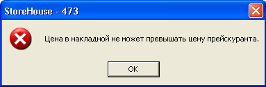 Если выставлен флаг «Ограничить цены п/н прейскурантом» и цена в создаваемой накладной отличается от цены в прейскуранте, система выдаст предупреждение и документ не будет сохранен.
