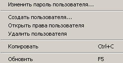 Ниже Вы видите команды всплывающего меню для работы с выделенным пользователем.