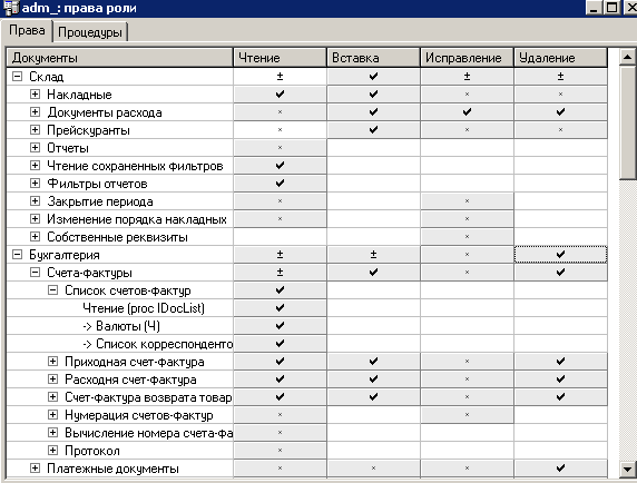 После завершения редактирования, права роли следует сохранить (команда Документ Сохранить документ или кнопка