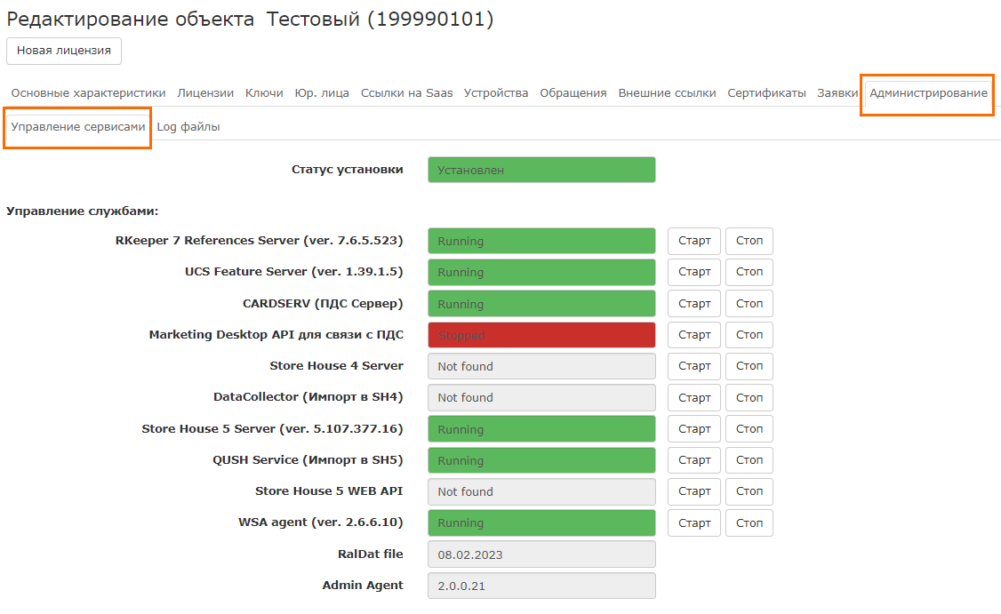 Для обновления откройте в карточке объекта rk_Cloud раздел Администрирование.