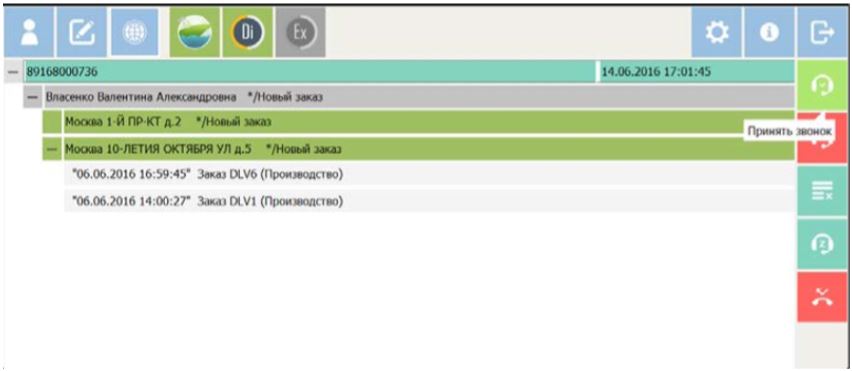 Определившийся номер телефона (Новый клиент) ФИО найденного по телефону клиента Адреса клиента Заказ по адресу клиента