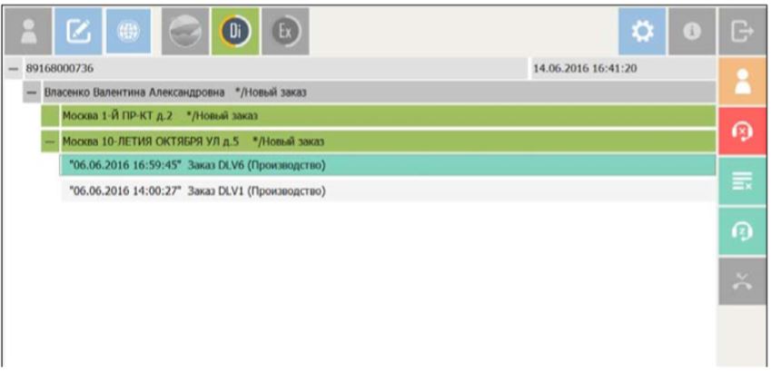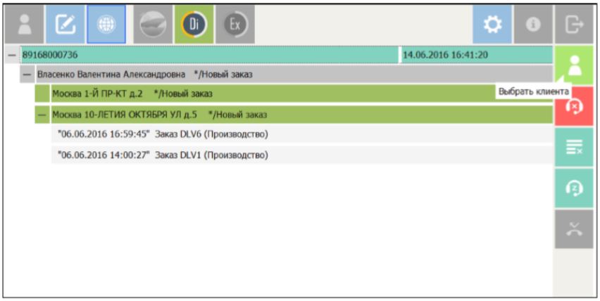 Для принятия заказа нового клиента нужно выставить курсор на поле с определившимся номером телефона и нажать кнопку. Откроется пустая карточка клиента, которую необходимо заполнить. Далее оператор принимает заказ стандартным образом.