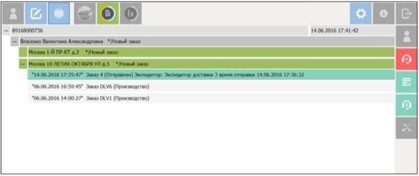 Если заказ находится в статусе Отправлено, то в окне определителя номера выводится информация по экспедитору, также выводится информация о времени отправки экспедитора (Рис. 7). Внести изменения в заказ в статусе Отправлено нельзя. Кнопки выбора недоступны.