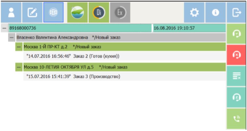 Если в «Настройках» Оператора для определителя номера выставлена настройка «Количество дней для отображения удаленных заказов» не 0 (ноль), то при определении номера в список заказов выводятся удаленные заказы по определившимся клиентам за количество дней от «сегодня», указанного в настройках (см. Рис. 7). Выводятся удаленные заказы в статусах Ожидание, Производство, Готов и Выполнено.