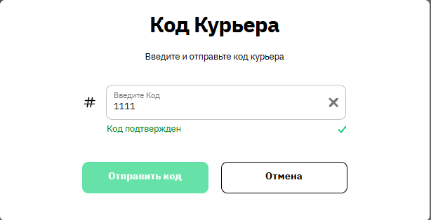 Когда курьер назовёт код, введите его в специальное поле интерфейса.