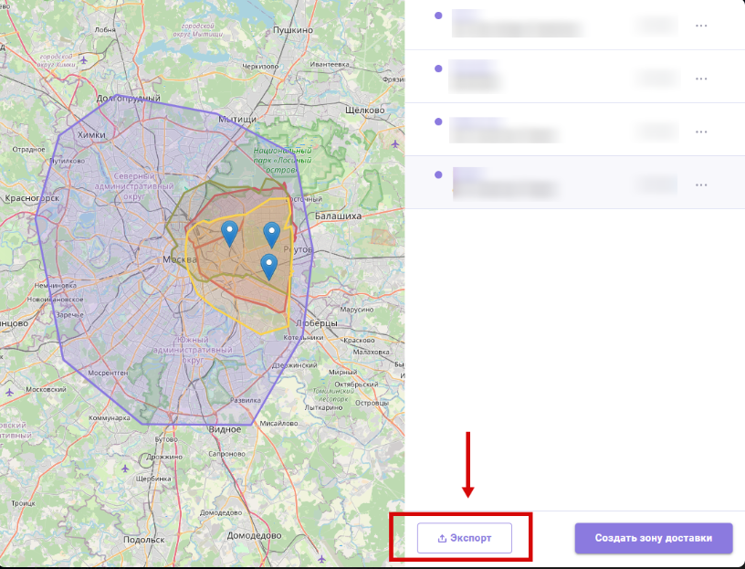 - Экспорт активных зон доставки в формат GeoJSON. При большом количестве зон доставки удобно экспортировать все активные зоны в один файл для дальнейшего использования в сторонних сервисах. (Административная панель > Зоны доставки).