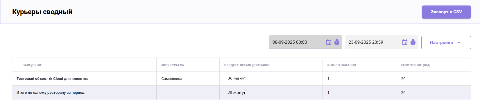 1. Перейдите в меню Отчеты > Курьеры сводный