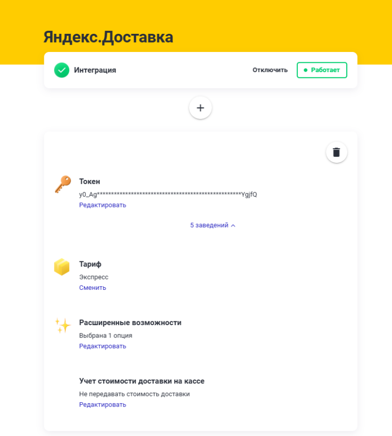 Настройка интеграции завершена, теперь курьеры Яндекс.Доставка доступны для всех заведений сети. В интерфейсе заведения доступен выбор способа доставки. Подробнее читайте в статье Назначение курьера на заказ.