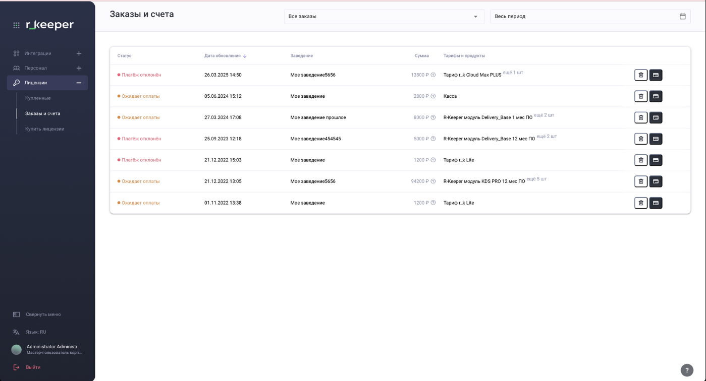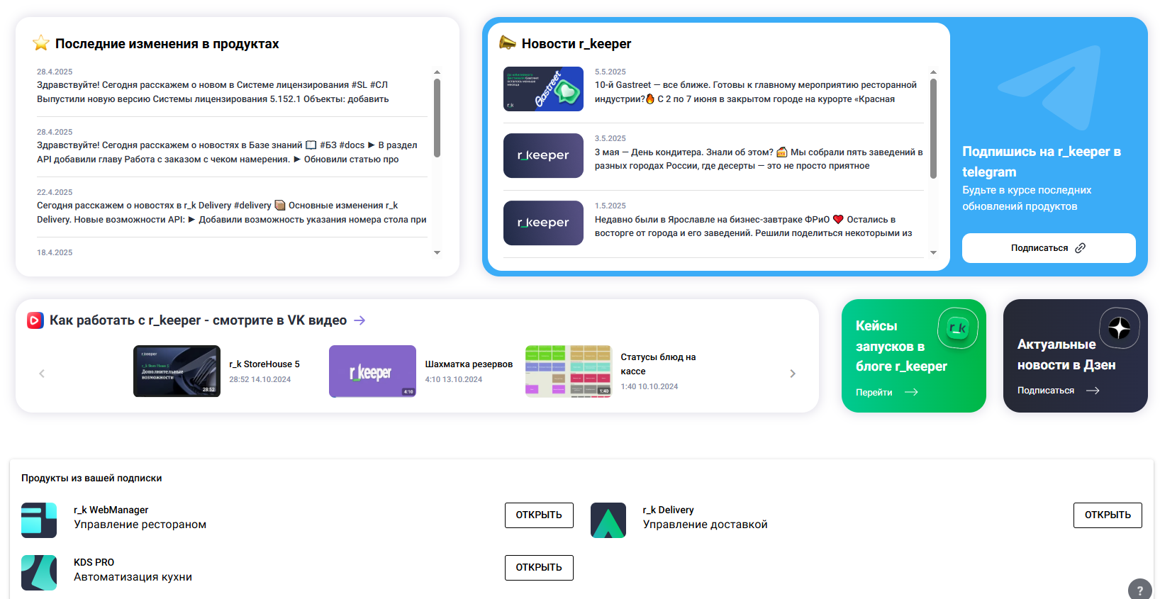 - Переход к работе с доступными продуктами экосистемы r_keeper.