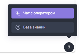 в правом нижнем углу экрана, система предложит воспользоваться Базой знаний, либо перейти в Чат с оператором.