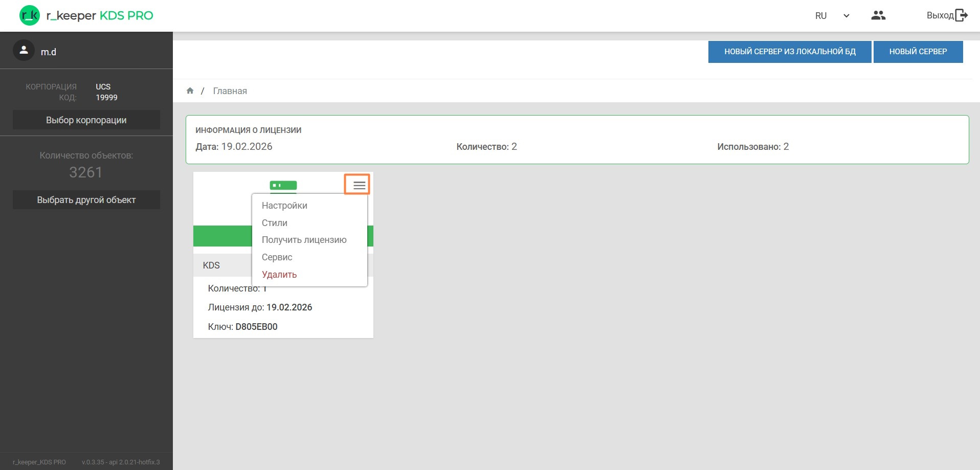 После чего откроется доступ к настройкам сервера, настройкам стилей, получению лицензии и возможности удалить выбранный сервер.