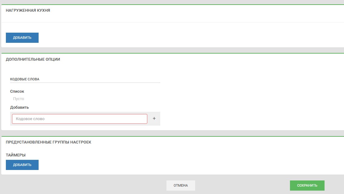 В разделе "Дополнительные опции" для включения оптимизации необходимо указать кодовое слово в строку Добавить. Список кодовых слов приведен ниже в таблице.
