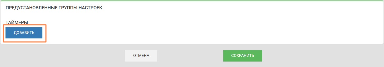 - Выберите нужный профиль и перейдите в раздел Таймеры. В пункте Вид таймера, укажите Предустановленный.
