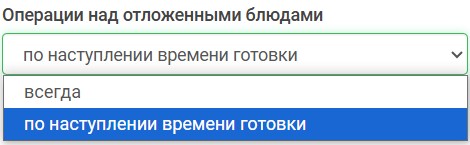 В разделе «Операции над отложенными блюдами» можно задать правило работы над отложенными блюдами.