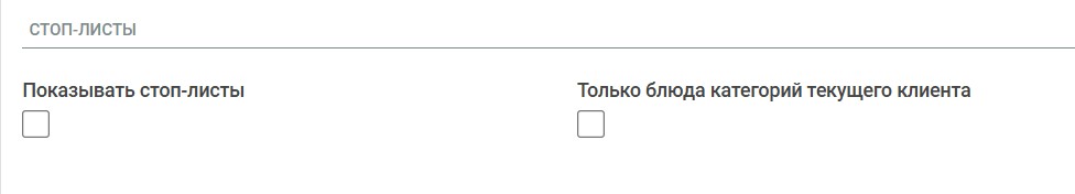 Стоп-Листы - включает доступ к созданию списков ограниченных и запрещенных блюд на экранной форме.
