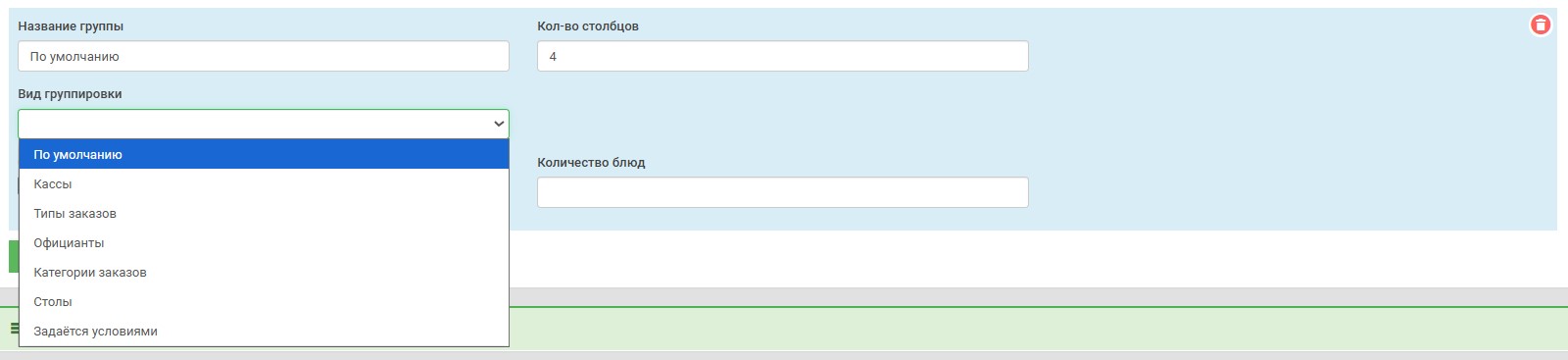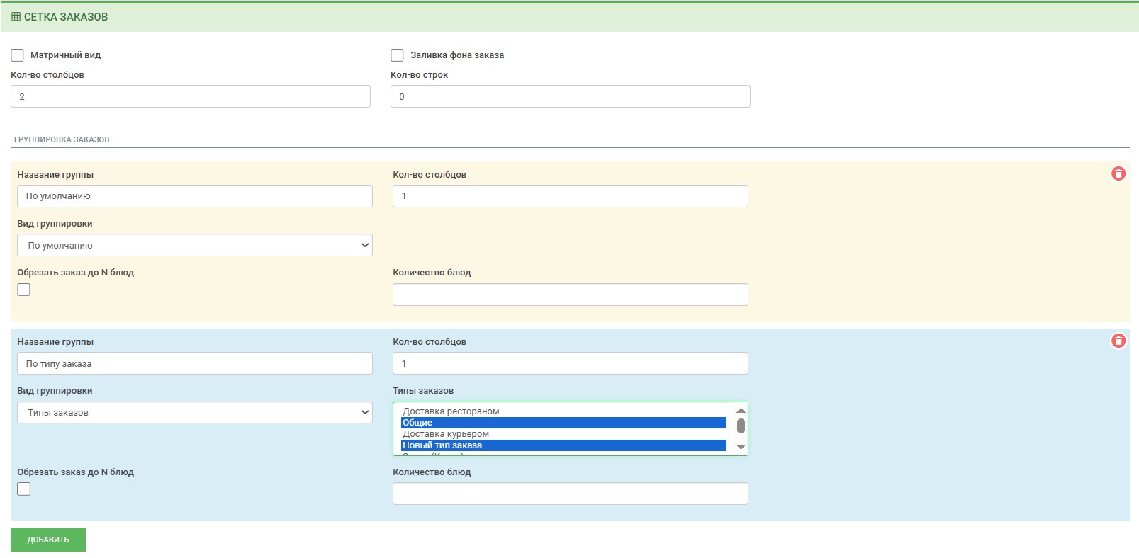 «Группировка заказов» - настройка правил распределения заказов по столбцам.