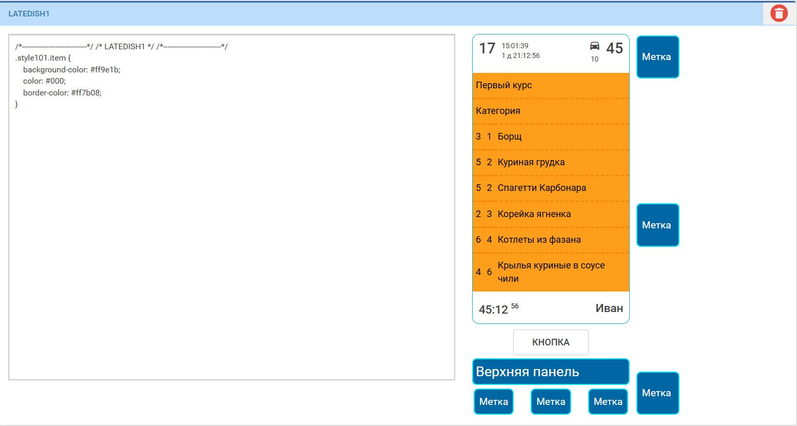 • Red dish on late ready 2 — отображать строку с блюдом красным фоном при превышении номинального времени готовки (опоздании).
