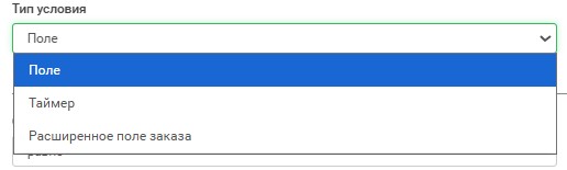 Для каждого условии необходимо: задать правила выполнения условия (тип условия, поле, операция и значение) и выбрать нужное действие.