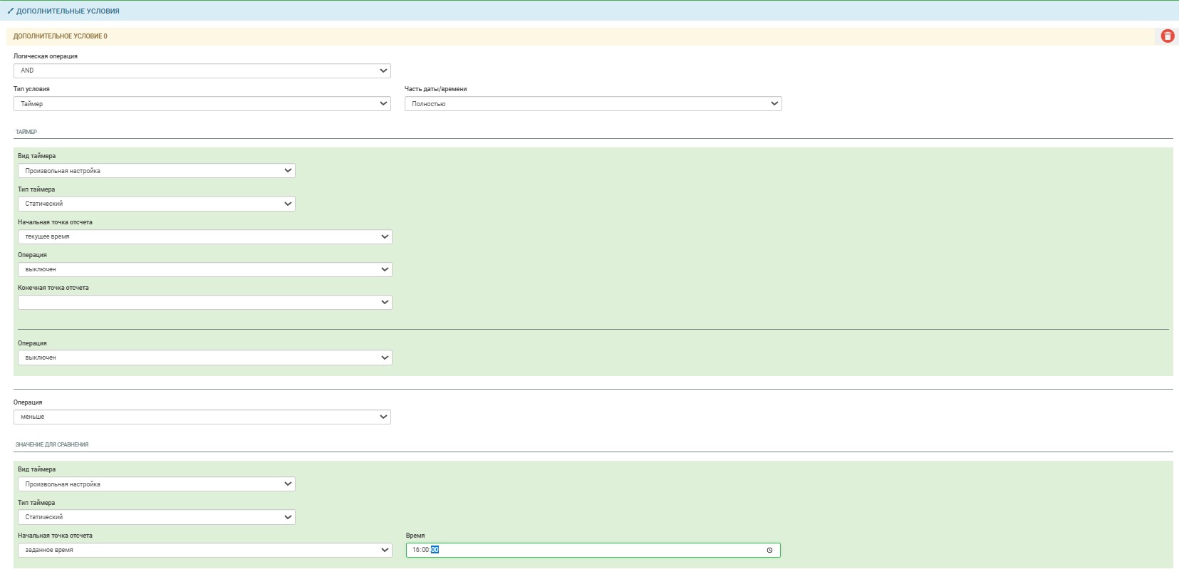 • Первое дополнительное условие — повторите настройки с заданным временем меньше, чем 16:00
