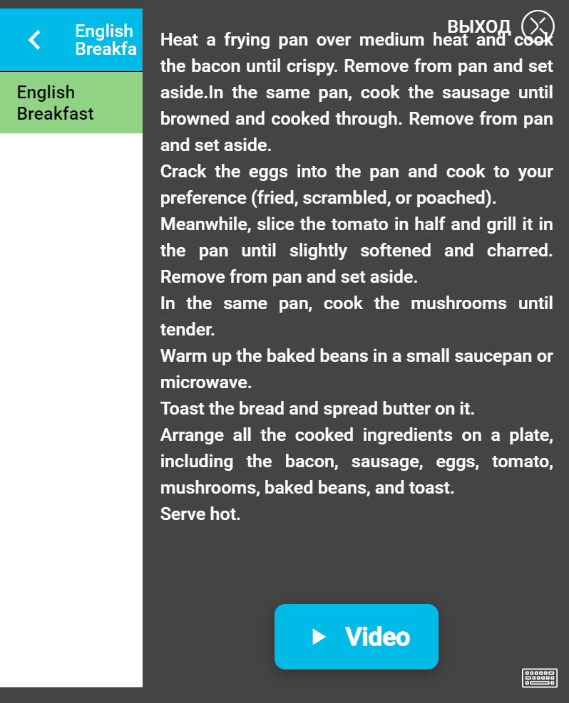 В этом разделе можно настроить переключение языков, на которых может отображаться название блюд и рецептура на экранах повара.