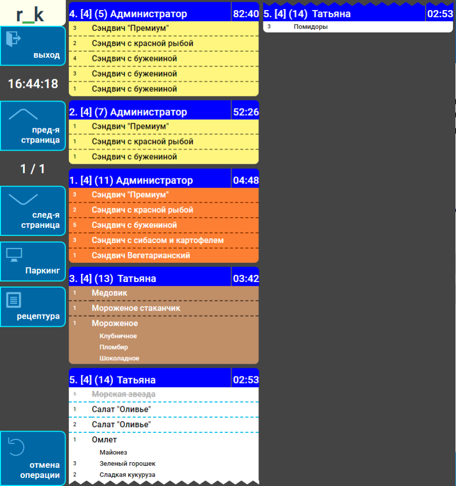 В системе предусмотрена специальная опция, которая позволяет при большой загрузке производства отложить выдачу заказа, т.е. «запарковать» его с указанием дополнительного идентификатора заказа. В частности, если гость будет ожидать свой заказ на автомобильной парковке, то предлагается указывать номер автомобиля. Применить действие «Парковка» можно только на заказ полностью из любого статуса, и на любых экранных формах, на которых доступен статус «Парковка». Для того, чтобы отложить готовящейся заказ, выберите его на экранной форме , введите номер автомобиля с помощью цифровой клавиатуры и выберите действие «Парковка». Максимальное число знаков для номера – 4 . После этого в шапке заказа отобразится введенный идентификатор. При этом заказ НЕ ИЗМЕНИТ статус!
