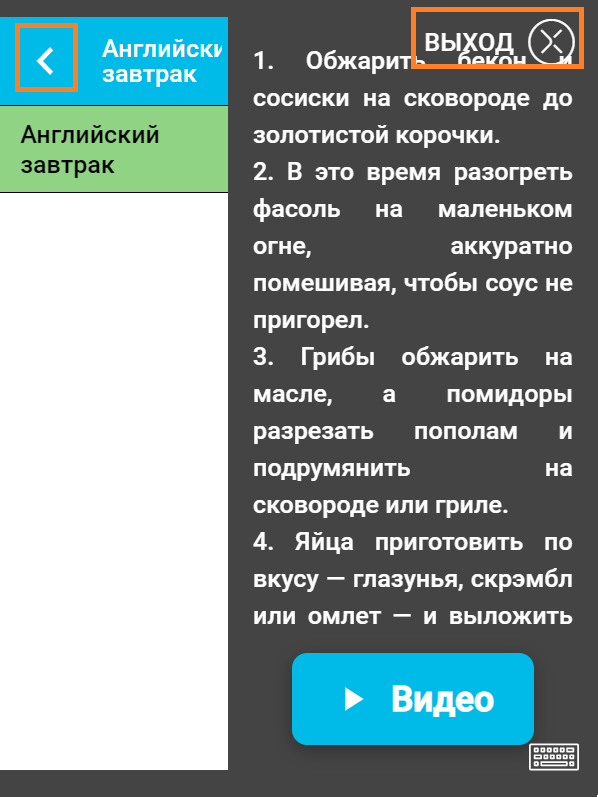 Если у блюда добавлен видео-рецепт, в нижней части экрана отобразится кнопка видео.