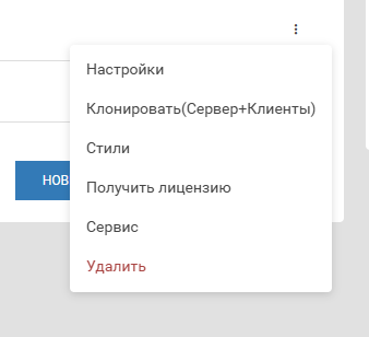 После чего откроется доступ к настройкам сервера, настройкам стилей, получению лицензии и возможности удалить выбранный сервер.