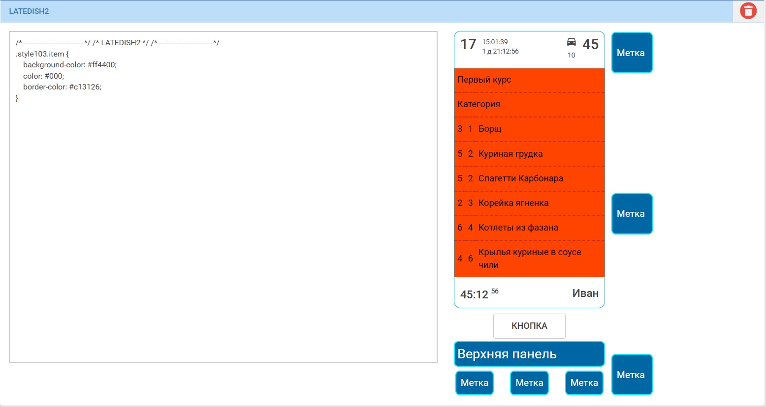 - Red dish on late ready 2 — отображать строку с блюдом красным фоном при превышении номинального времени готовки (опоздании).