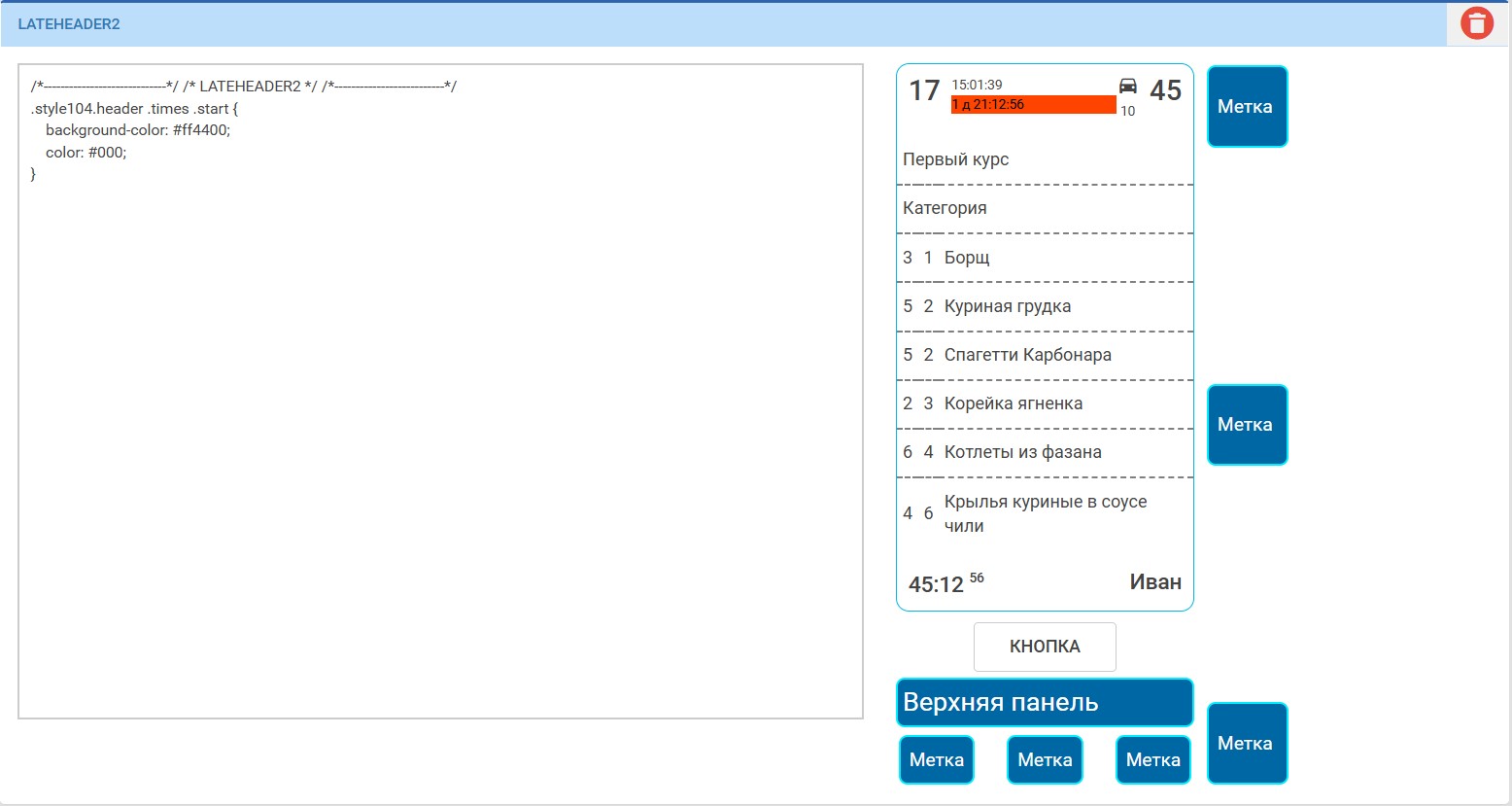 - Red timer on order late ready 2 — отображать таймер на красном фоне при превышении номинального времени готовки (опоздании).