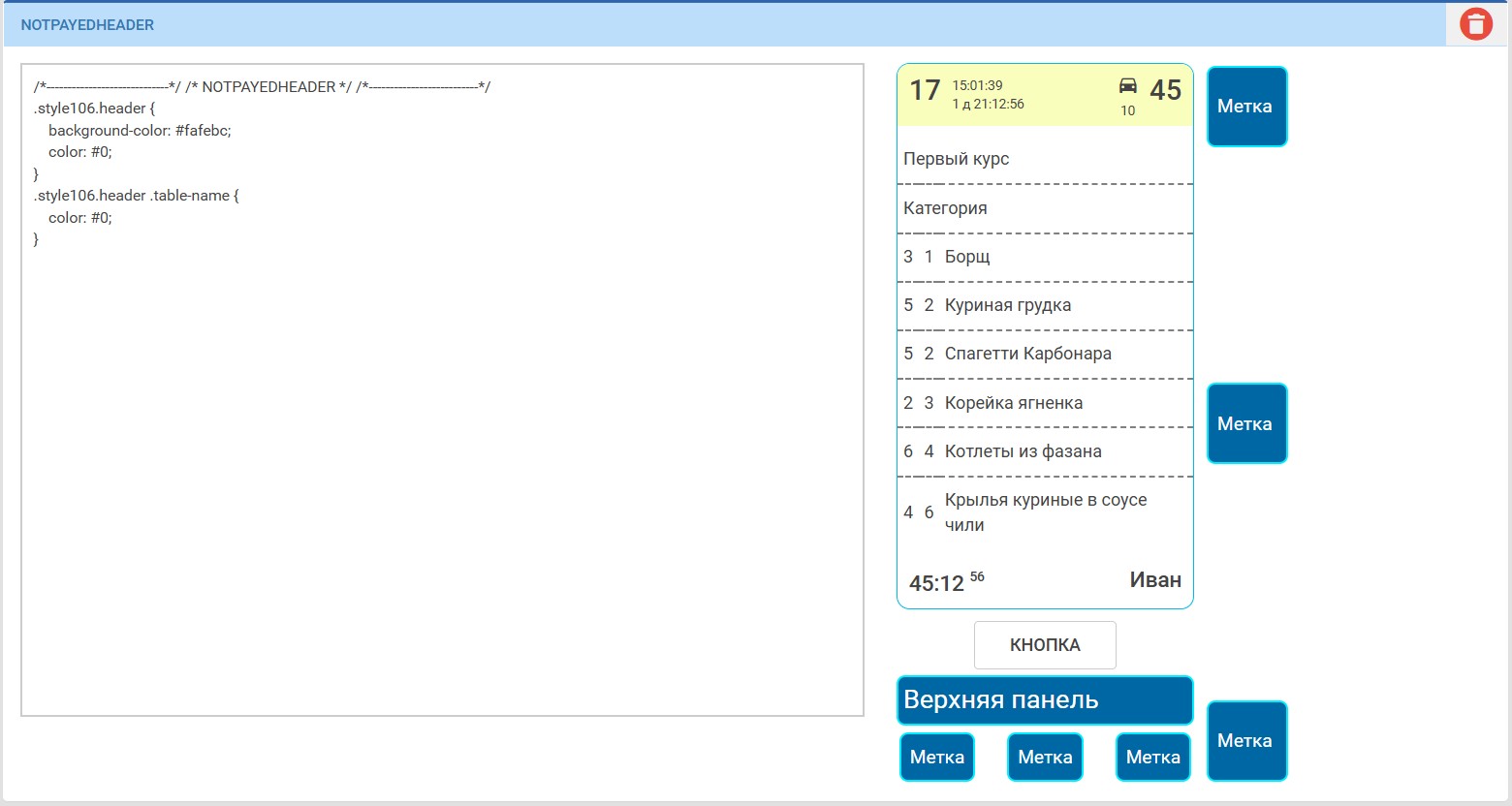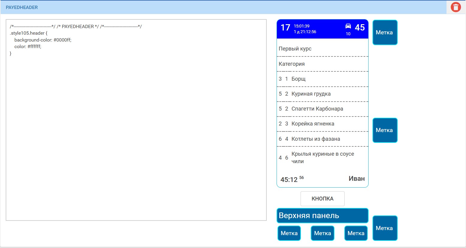 Стиль PAYEDHEADER – отвечает за изменение цвета при оплате заказа в быстром чеке.