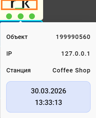 При нажатии на значок r_k в левой верхней части экрана отобразится общая сервисная информация о клиенте: