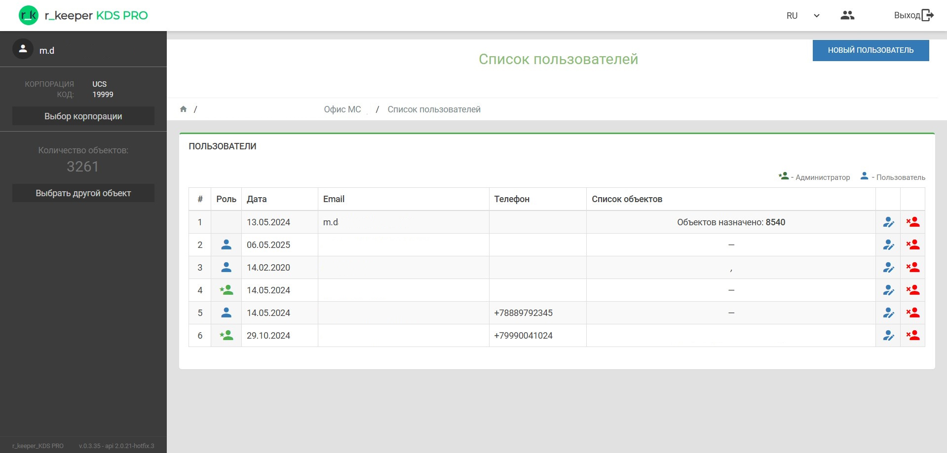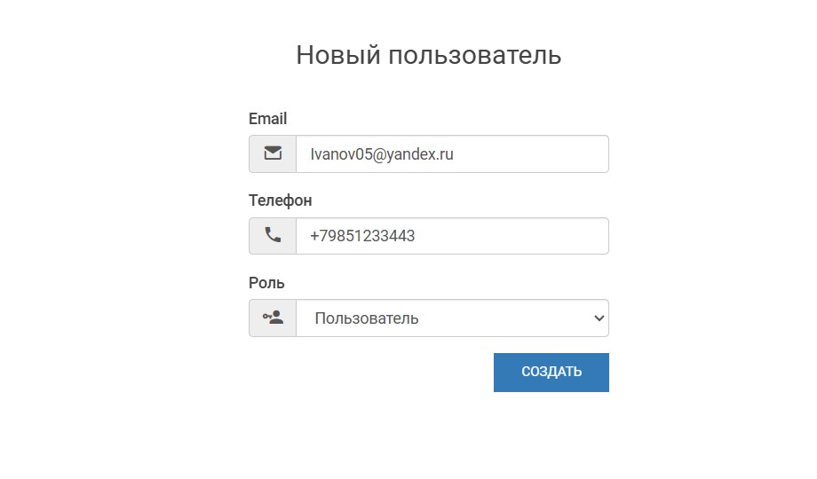 Пользователь с ролью «Admin» может создавать других пользователей, но только с ролью «Пользователь».