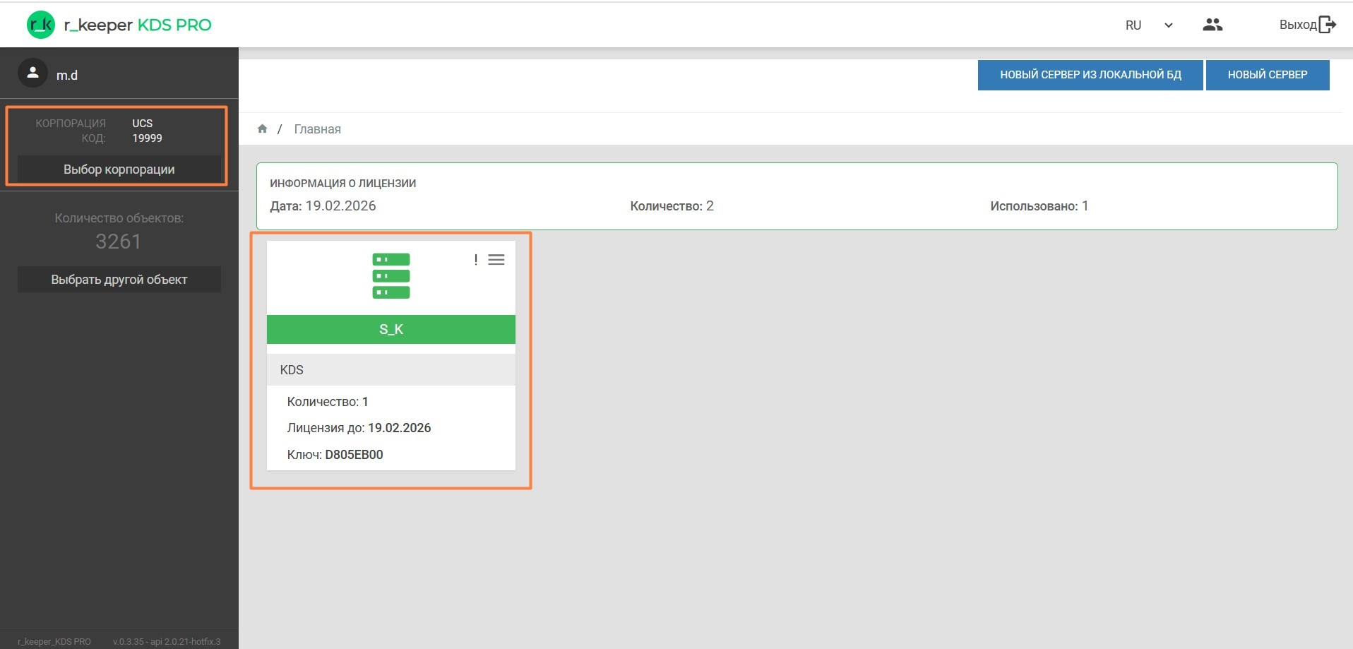 Выберите нужный объект (ресторан) после чего в списке серверов отобразится список серверов r_keeper KDS PRO, созданных для данного объекта.