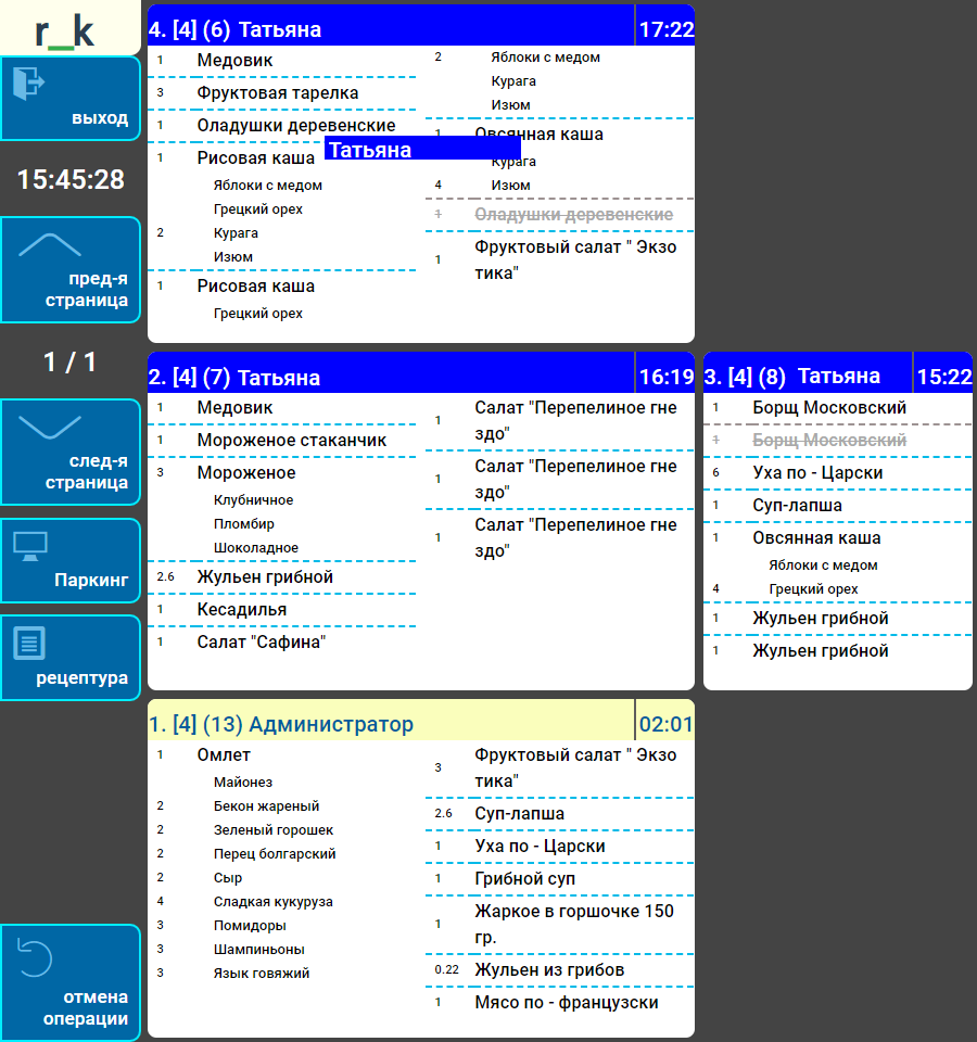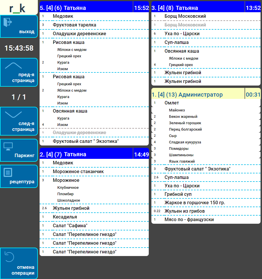 - По мере набивки — заказ на экране отображается по мере ввода блюд в заказ;