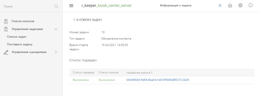 - «Выполнено подзадач» - количество выполненных подзадач (подзадачи определяются по количеству киосков);