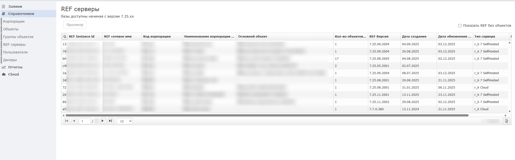 Справочник показывает, какие базы r_keeper_7 установлены у клиентов.