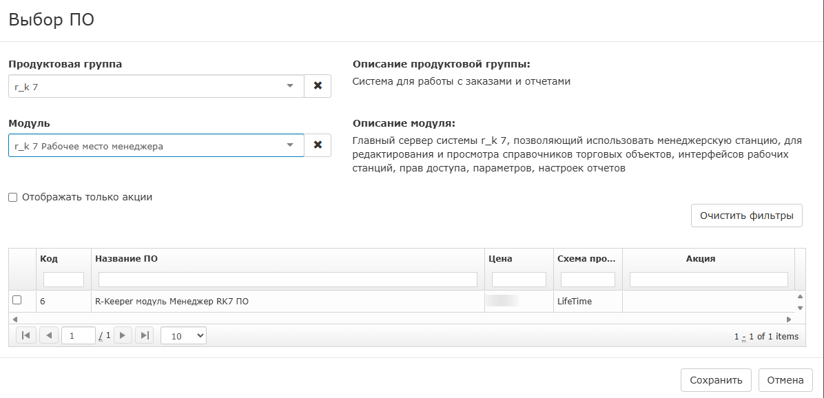 - при выборе модуля автоматически выбирается продуктовая группа и ограничивается список продуктов