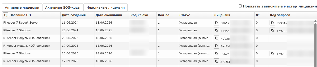 - Активные лицензии