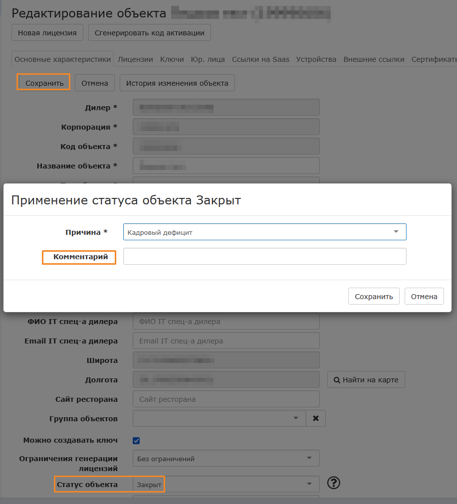 Объекты: запрашивать причины смены статуса Теперь при смене статуса объекта будет запрашиваться причина смены статуса. Например: