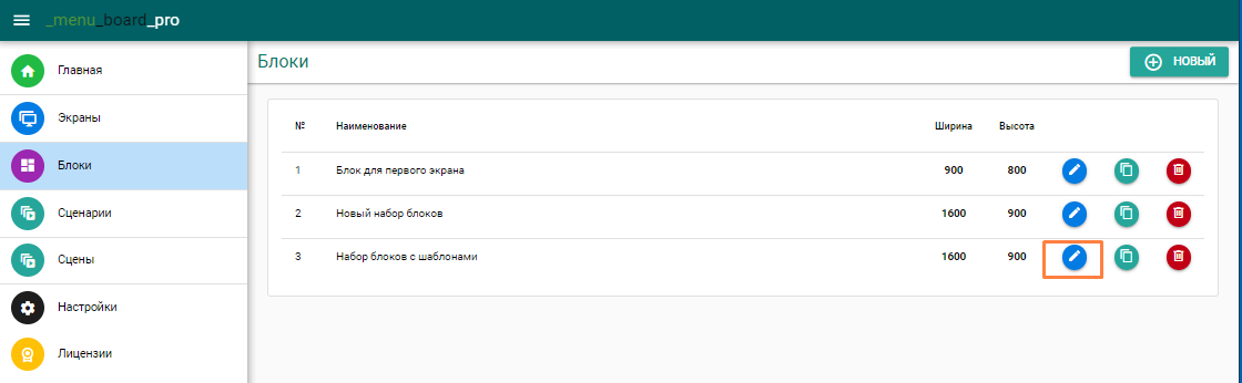Созданные блоки можно редактировать. Для этого в списке выделите нужный блок и нажмите на кнопку «Редактировать».