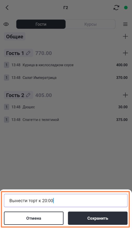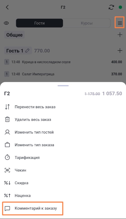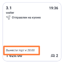 Комментарий — это произвольная текстовая информация, которая передается на кассу и отображается на кнопке заказа.