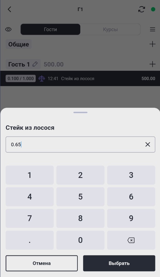 Если для блюда на кассе заданы ограничения по количеству и указанный вес превышает остаток, появится ошибка: Если изменение веса не было сделано, при попытке оплатить заказ или распечатать пречек появится ошибка: Если у отправленного блюда изменение веса было сделано на кассе, то на мобильном официанте иконка весов пропадет и изменить вес будет нельзя.