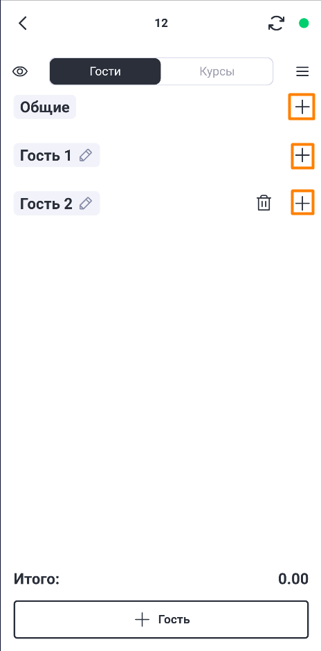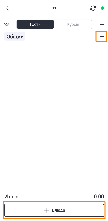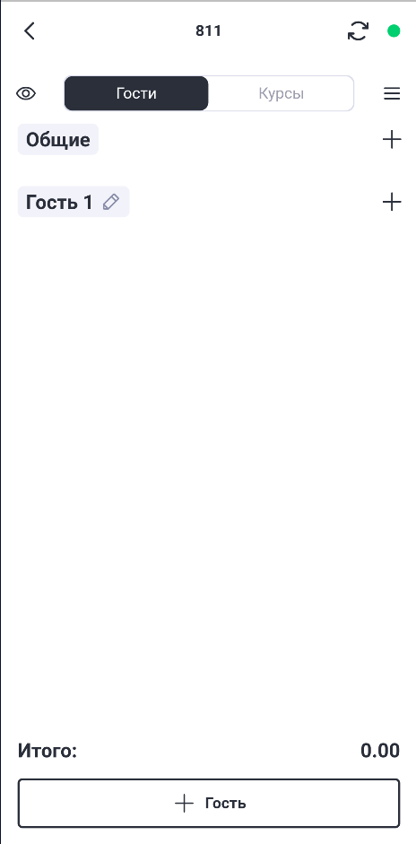 - Добавлена кнопка "+Блюдо" в заказе на закладке Гости. Теперь, если параметр Исп. кол-во гостей установлен в значении Не использовать (т.е. ввод кол-ва гостей в заказе отключен), в заказе на закладке Гости будет доступна дополнительная кнопка +Блюдо в нижней части окна. При других значениях параметра (Необязательное свойство или Обязательное свойство) добавить блюдо можно стандартным образом: по кнопке "+" в строке гостя.